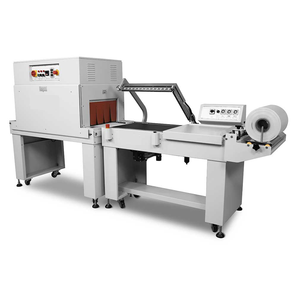 Gracias a su versatilidad y fácil operación, son especiales para productos irregulares o packs de productos. Está integrada con un ventilador simple de aire caliente, que permite contraer el film plástico al producto, entregando una excelente presentación. Es un equipo pequeño y versátil, que alcanza una producción de 8 a 14 productos por minuto. Medidas de barras selladoras: de 550 de largo por 420 mm de ancho, con una altura máxima de producto de 300 mm.